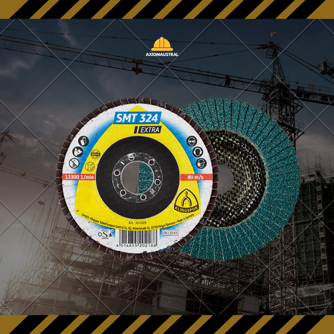Disco Flap Klingspor SMT 324 Extra ofrece un rendimiento superior gracias a sus láminas de circonio de alta durabilidad. Con medidas de 115 mm x 22,23 mm y grano 40, 60, 80 y 120, garantiza un desbaste uniforme y un acabado controlado en una sola operación. Su velocidad máxima de 80 m/s (13.300 RPM) y certificación OSA y EN 13743 aseguran seguridad y eficiencia. Ideal para optimizar tiempos, reduce la frecuencia de cambio de discos manteniendo un corte agresivo y un acabado fino en cada uso.