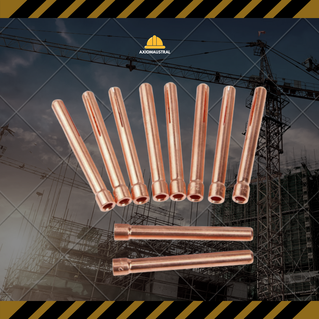 La prensa TIG está fabricada en cobre de alta conductividad y diseñada con ranuras para una sujeción óptima del electrodo. Compatible con antorchas TIG estándar, garantiza una fijación firme del tungsteno, asegurando una transferencia de corriente eficiente y estable. Disponible en diámetros de 1.6 mm, 2.4 mm y 3.2 mm, esta pieza reduce movimientos y minimiza fallas en el arco, facilitando además su instalación y reemplazo para una operación precisa y confiable.