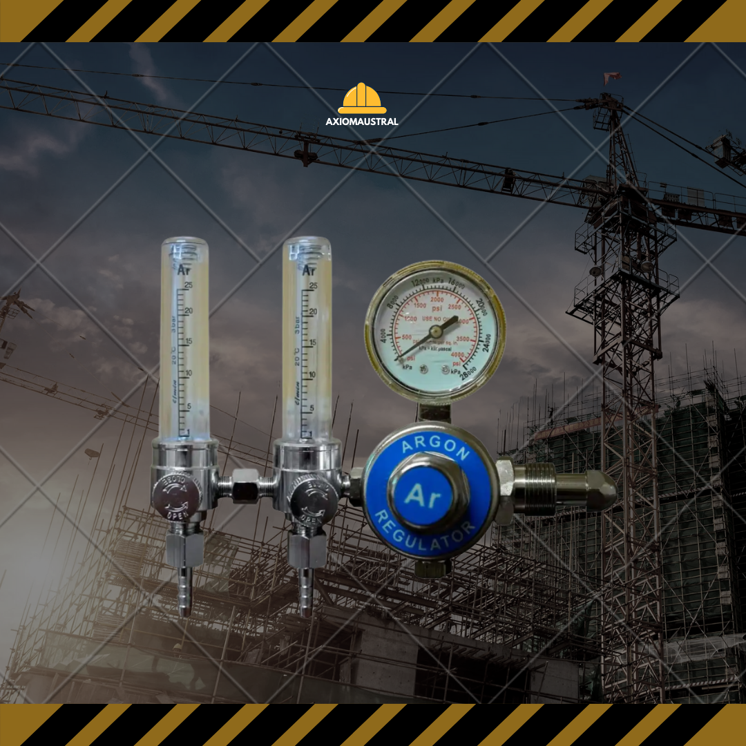 El Regulador de Argón Doble presenta un cuerpo de latón resistente con acabado de alta precisión, equipado con manómetro de presión y dos flujómetros calibrados. Su conexión estándar es compatible con cilindros de argón y mezclas, mientras que las perillas independientes permiten ajustar el flujo en cada salida de forma precisa. Este regulador facilita el uso simultáneo de dos equipos de soldadura, asegura un flujo estable y uniforme en ambos canales, optimizando el consumo de gas y minimizando pérdidas, ideal para operaciones continuas en talleres de alta demanda.
